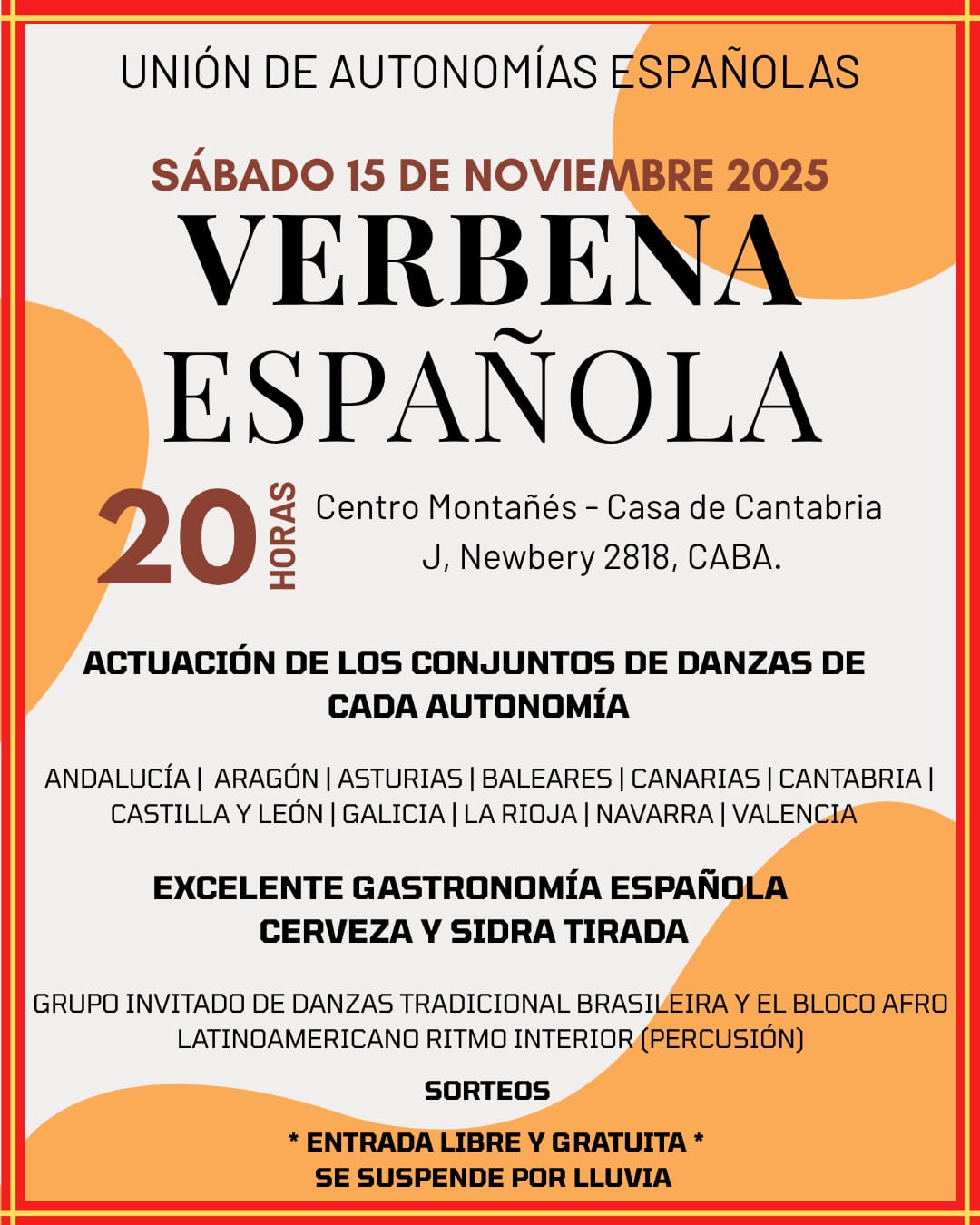 15.11.2025 Verbena española. SUSPENDIDO POR LLUVIA Ver imagen más grande Melisa Barrionuevo2025-11-14T10:45:51-03:00octubre 28, 2025|Categorías: Otras participaciones|Sin comentarios Comparte este artículo en las redes sociales: FacebookXRedditLinkedInPinterestVk Artículos relacionados Embajada de España: Día de la Memoria marzo 30, 2026 | Sin comentarios Programa «Brisas de España»: 14.03.2026 marzo 30, 2026 | Sin comentarios España Exterior: La Embajada acoge «Mesa de Mujeres» marzo 16, 2026 | Sin comentarios PROGRAMAS DE RETORNO TEMPORAL Y LIDERAZGO DE LOS CENTROS DE CASTILLA Y LEÓN marzo 12, 2026 | Sin comentarios Instrucciones VOTO CERA marzo 5, 2026 | Sin comentarios Deja tu comentario Cancelar la respuestaComentar Guardar mi nombre, email y sitio web en este navegador para la próxima vez que comente. Δ